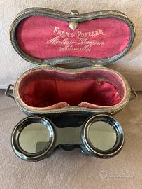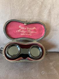 Nella seconda metà del 1800, gli occhiali da teatro erano un accessorio di moda essenziale per gli amanti del teatro e venivano spesso regalati. Questo paio di occhiali da teatro è nero con montatura in ottone. Gli oculari hanno la scritta Chevalier Opticien Paris impressa e sull'asta c'è la scritta 8 Lens.