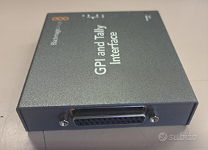 Vendo Blackmagic Design GPI and Tally Interface, interfaccia originale Blackmagic per la gestione dei segnali GPI e Tally con switcher ATEM e router Videohub. L’unità fornisce: 8 ingressi GPI optoisolati 8 uscite Tally a relè (chiusura di contatto) Collegamento Ethernet 10/100 Base‑T (con loop‑through) Porta USB 2.0 per configurazione e aggiornamenti firmware Connettore DB‑25 per I/O GPI e Tally Ideale per studi TV, regie live, produzioni broadcast ed eventi, per segnalare lo stato “on‑air” a telecamere, monitor o dispositivi esterni. Condizioni: Usato, in ottime condizioni estetiche e funzionali (come da foto) Testato e perfettamente funzionante Inclusa interfaccia + cavo (come visibile in foto) Compatibilità: Switcher Blackmagic ATEM Router Videohub Sistemi Windows e macOS E' possibile ritirare il materiale, previo appuntamento, a due passi dall'uscita 10 del GRA, vicino all' IKEA, dal lunedì al venerdì 8-11.30 e 13-16.30. Per qualsiasi domanda potete contattarci negli orari riportati sopra. Ns riferimento: req 423355-60 B1-FL-6A