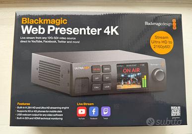 Web Presenter 4K inutilizzato completo come nuovo con scatola. Lo strumento ideale per andare in rete con il miglior encoder in circolazione, in grado di generare stream di alta quallità in H264/H265, rtmp e SRT a risoluzione HD o 4K.