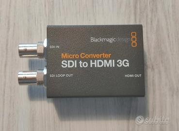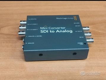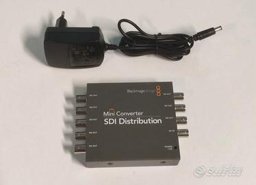 Descrizione dei 4 convertitori -Blackmagic mini converter SDI to audio 4k usato pochissimo come si vede dalle foto e perfettamente funzionante. De-embedda l'audio SDI in audio analogico su jack bilanciato. 4 canali audio. Adatto per segnali SDI HD e 4K. -Blackmagic converter SDI distribution usato molto poco e perfettamente funzionante. Ha 1 ingresso SDI embedded e 8 uscite sempre SDI embedded. Si adatta automaticamente al segnale in ingresso. Tutte le 8 uscite sono funzionanti. -Blackmagic micro converter SDI to HDMI usato pochissimo come si vede dalle foto e perfettamente funzionante. Converte segnali video embedded SDI in segnali video HDMI sempre con audio embedded. Ha una uscita SDI di loop. -Blackmagic mini converter SDI to ANALOG usato e perfettamente funzionante. Converte segnali video SDI e SDI embedded in segnali video analogici component e composit. Ha l'uscita SDI loop e l'uscita audio analogica su jack da 6,3 mm bilanciata. Tutti con alimentatore.