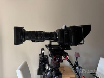 Vendo in blocco BlackMagic Studio Camera 4K Plus perfetta e con imballo originale corredata con i seguenti accessori: Mount B4 originale (Ursa) con anello adattatore per Studio Camera montato su barre in carbonio (Solo questo kit ha un valore di 600 euro), Ottica B4 Canon J9ax5.2B4 IRS SX12 con extender 2x, con evidenti segni di usura ma funzionante alla perfezione. Ricordo che le ottiche B4 devono essere usata sempre con extender 2x per evitare la vignettatura provocata dalla dimensione elevata del sensore delle Studio Camera. L'ottica è dotata di adattatore per essere alimentata esternamente. Chi conosce i vari elementi saprà bene calcolare il valore totale di questo kit!