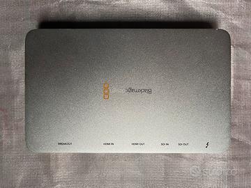 Vendo interfaccia professionale di acquisizione e riproduzione video Blackmagic UltraStudio Express in ottime condizioni estetiche e funzionali. Dispositivo ideale per montaggio video professionale, color correction e acquisizione da sorgenti analogiche e digitali (SDI/HDMI). Perfetto per chi lavora con DaVinci Resolve, Premiere Pro o Final Cut Pro. Il kit è pronto all'uso e include accessori difficili da reperire separatamente: • UltraStudio Express (interfaccia Thunderbolt). • Breakout Cable ORIGINALE (Frusta di cavi): indispensabile per connessioni Analogiche (S-Video, Component, Composito RCA) e Audio professionale (XLR). Caratteristiche principali: • Ingressi/Uscite SDI e HDMI (3G-SDI). • Ingressi/Uscite Analogiche tramite breakout cable. • Alimentata direttamente dal bus Thunderbolt (non serve alimentatore esterno). • Supporta formati fino a 1080p30 / 1080i60. • Compatibile con Mac (Intel e Apple Silicon tramite adattatore) e Windows. Stato: Testata con software Blackmagic Desktop Video, perfettamente riconosciuta dal sistema.
