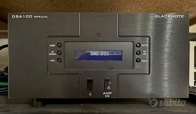 Il DSA 1oo Special è un integrato da 100 watt/8Ohm per canale in classe D, con caratteristiche esclusive: massiccia alimentazione tradizionale, dual-mono, separazione della sezione pre, sofisticatissimo controllo di volume con alta risoluzione, risposta in frequenza indipendente dal carico, può essere abbinato anche a diffusori che scendono a 2 ohm. Velocità e dinamica di gran livello, raffinatezza e palcoscenico fuori discussione, micro e macro contrasto anch’essi a livelli altissimi. Perfetto, qualche piccolo segno di utilizzo, telecomando originale (un pò rovinato) e secondo telecomando. Non ho imballo originale ma garantisco spedizione sicura.