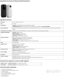 🔔 Blink Video Doorbell 2ª Generazione – Videocitofono Smart 1440p HD 👉 Nuovo, mai utilizzato e mai configurato 👉 Scatola originale sigillata, mai aperta 👉 Disponibile subito – nessuna attesa Videocitofono Blink di ultima generazione, ideale per controllare chi è alla porta in qualsiasi momento. Installazione semplice, completamente wireless e gestione da smartphone o Alexa. 👉 Modello più recente (2ª generazione) con video 1440p e visuale completa verticale (head-to-toe) 👉 Evoluzione del precedente modello 1080p ⚠️ IMPORTANTE ✔️ Blink Sync Module NON incluso (necessario) ✔️ Richiede Wi-Fi 2.4 GHz ✔️ Funzioni avanzate disponibili con abbonamento opzionale 🌟 CARATTERISTICHE ✔️ Video HD 1440×1440p ✔️ Angolo visivo 150° ✔️ Visione notturna ✔️ Audio bidirezionale ✔️ Notifiche movimento ✔️ Fino a 2 anni di autonomia (3 batterie incluse) ✔️ Compatibile con Alexa ✔️ Resistente a pioggia e polvere (IP65) ⚙️ COMPATIBILITÀ ✔️ Compatibile con Sync Module Core e Sync Module 2 ✔️ Suoneria tramite: Alexa/Echo, smartphone o campanello esistente 📦 CONTENUTO DELLA CONFEZIONE ✔️ Blink Video Doorbell - videocitofono (2ª generazione – colore nero) ✔️ 3× Batterie AA al litio da 1,5 V, non ricaricabili ✔️ 1x piastra a parete ✔️ 1x kit di montaggio a parete ✔️ 1x strumento per la rimozione del citofono ✔️ 2x prolunghe per cavi 🚀 SPEDIZIONE ✔️ Entro 24h dall’ordine, nei giorni feriali ✔️ Imballaggio professionale 👉 Ottima soluzione per sicurezza casa e gestione consegne