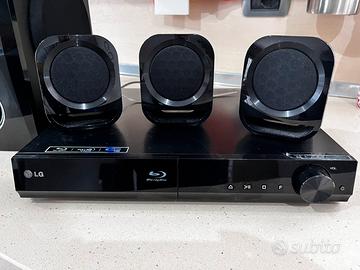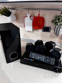 Sistema home theater 5.1 come nuovo... Installato ma usato solo 2 volte.Completo di lettore dvd blu ray di 5 casse un sub wofer e telecomando.