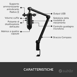 Vendo per inutilizzo microfono professionale in kit per Registrazioni, Streaming, Gaming, Podcasting. Compass braccio per microfono broadcast: monta il microfono USB Yeti al braccio Compass con design premium a molla interna e gestione dei cavi integrata, per gaming streaming, podcasting e voice-over Shock Mount Radius III Software Blue VO!CE Regalo Spugna Filtro Antipop per Microfono, Antivento in Schiuma AOBETAK e Filtro Antipop rotondo (nero) per Microfono da Studio con Clip di Supporto Neewer NW(B-3) 6" Ancora nella scatola originale, mai aperto a euro 225...nuovo prezzo 50% >>>>110€