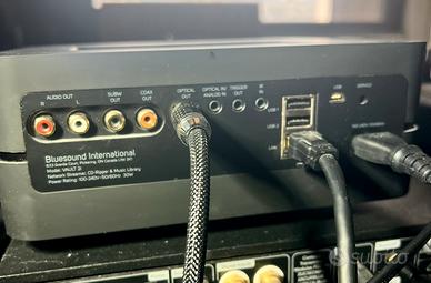 Descrizione Vendo Bluesound Vault 2i, in condizioni eccellenti, usato sempre con cura maniacale. È un server musicale + streamer con funzione di ripping automatico dei CD in qualità lossless. Perfettamente funzionante, silenzioso, pronto da usare. Ideale per chi vuole un sistema semplice, stabile e di alta qualità per gestire tutta la propria musica. Caratteristiche principali • Ripping CD automatico in FLAC/MP3 • HDD interno da 2TB • Streaming via BluOS (Tidal, Qobuz, Spotify, ecc.) • Uscite digitali e analogiche • Compatibile con multiroom Bluesound • App stabile e intuitiva • Silenzioso e affidabile Condizioni • Tenuto in ambiente non fumatori • Nessun difetto estetico o funzionale • Aggiornato all’ultima versione software • Testabile senza problemi Preferibile ritiro di persona, imballo originale completo; posso spedire con dopoio imballo,