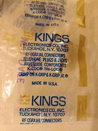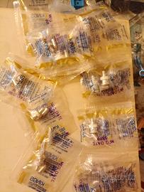 Bnc a crimpare ancora confezionati . Per cavo schermato Rg58/59..Rg8..ecc... Credo siano in argento o alluminio, no nichel Prodotti made in U.S.A. no cinesi disponibilità 20 pezzi nuovi Euro 40