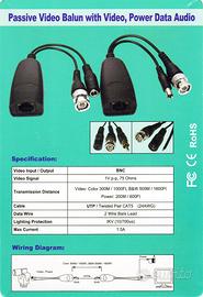 BNC Over Ethernet Cable Extender Kit per CCTV DVR - Video Balun passivo con video e alimentazione