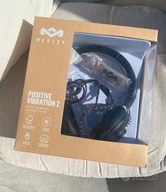 Marley House of Positive Vibration 2, headphones on ear. In leggerissimo alluminio e tessuto riciclato, dettagli in legno certificato FSC, padiglioni imbottito e confortevoli per le orecchie, microfono integrato per chiamate vocali e controllo a pulsante, design pieghevole e cavo anti groviglio rimovibile (collegamento con jack). Nuovo con cartellino e scatola originale. Un regalo inutilizzato