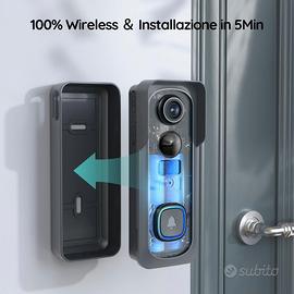 BOIFUN Videocitofono Wifi 2K UHD Campanello Senza Fili da Esterno con Suoneria e Allarme Immediato, 166°Angolo Visuale, Rilevamento Umano PIR, Audio Bidirezionale, Batteria 6700mAh, IP66, 2.4Ghz