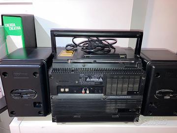 Vendo Boombox AIWA CA-DW8E, modello iconico degli anni ’80, in condizioni eccellenti sia estetiche che funzionali. Completo di tutti gli accessori originali (cavo di alimentazione e cavi delle casse paterali) ad eccezione della scatola e del libretto di istruzioni.