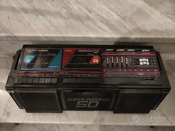Splendido radioregistratore anni '80 con subwoofer centrale. Radio ed entrambi i lettori di cassette funzionanti. DA RIVEDERE e DISOSSIDARE tutti gli slider con spray pulisci contatti in quanto producono crepitii ed in certe posizioni interrompono il suono. Condizioni estetiche molto buone. Nessuna mancanza a livello di tasti e cursori. Antenna telescopica sana ed in perfette condizioni. Un bel pezzo di ghetto blaster vintage. Spedizione possibile a costo da verificare oppure ritiro di persona. Non accetto Tuttosubito.