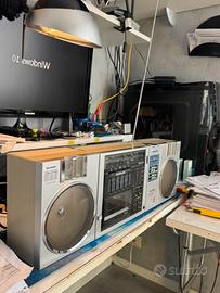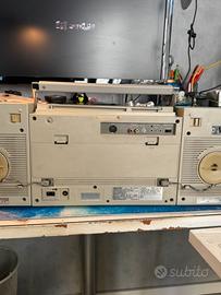 Vendo splendido boombox Sharp 9500 top di gamma negli anni 80, potentissimo casse a due vie staccabili, funzionante e restaurato con motorino e cinghie cassetta nuove, registra dalla radio e ha anche un ingresso Phono unico nel suo genere.