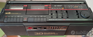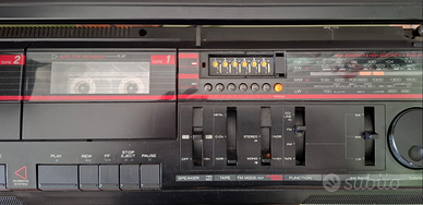 Splendido Boombox Hitachi TRK-3D5E stereo hi-fi perfettamente funzionante a 100 euro qualsiasi prova. Principio generale: Supereterodina Gamme d'onda: Onde medie (OM), lunghe (OL), corte (OC) e MF (FM) Particolarità: Registratore o riproduttore di cassette Tensioni di funzionamento: Rete / Batterie/ 220; 8 x 1,5 Volt Altoparlante: 4 altoparlanti - 2 medioalti + 2 woofer Materiali: Plastica (non bachelite o catalina) Modello: TRK-3D5E - Hitachi Ltd.; Tokyo Apparecchio portatile > 20 cm (senza la necessità di una rete) Dimensioni (LxAxP) 562 x 170 x 189 mm / 22.1 x 6.7 x 7.4 inch Annotazioni 3D-Doppia cassetta-Stereo-Radiorecorder 6 UKW-Stationsspeicher. AFC 5-Band Graphic-Equalizer. 2 x 30 Watt Spitzenleistung. 2 x 100mm Super-Woofer, 2 x 100mm MHT. Peso netto 5.9 kg / 12 lb 15.9 oz (12.996 lb)