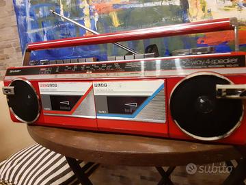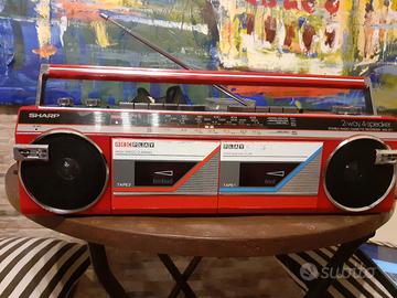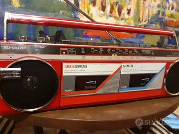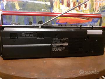 Boombox Sharp WQ271Z. In discrete condizioni estetiche, ripulita da sporco e polvere. Completa di tutte le sue leve e manopole. Radio funzionante con una discreta sintonia in FM, entrambi I lettori cassette funzionano in play e in avanzamento veloce.