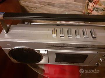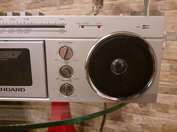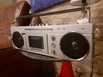 Boombox Standard SR 64. Ripulito da sporco e polvere completo di tutti I suoi componenti leve e manopole presenti, non presenta parti rotte o spaccate, Sintonizatore radio funziona con buona ricezione in fm stereo. Lettore cassette funziona sia in play che in avanzamento veloce. Essendo un oggetto di oltre 40 anni di età necessita comunque di revisione. Cedo come uso ricambi o per ripristino.