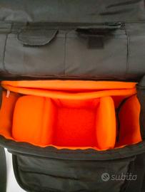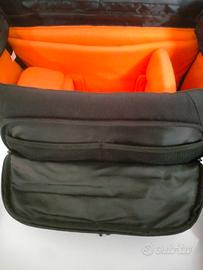 Borsa media per fotocamera e accessori è una borsa fotografico con spazio sufficiente per 1 corpo macchina più 1-2 obiettivi dimensioni. Misura 29 x 12 x 19 centimetri e pesa 0.5 kg È realizzato in nylon e polyestere. Ha divisori flessibili e intercambiabili.