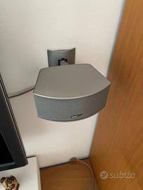Bose 321 GS composto da 2 satelliti 1 sub, cavetteria dedicata, telecomando e unità centrale che fa da radio rds, lettore dvd e amplificatore di segnale esterno come per esempio l'audio dei canali tv. Compreso nel prezzo regalo staffe per attaccare i satelliti al muro. Imballato nella sua scatola originale, preferirei consegna a mano