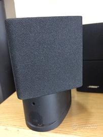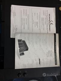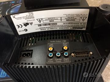BOSE ACUSTIMASS 10 SERIES III home theater speaker systhem 5.1 con 3 minidiffusori regolabili frontali e 2 posteriori, base attiva subwoofer con due regolazioni indipendenti a manopola, ingresso e output RCA, uscita diffusori con cavo dedicato, due woofer collocati parti inferiore indipendenti, piedini di supporto struttura, cavi di collegamento tutti originali, libretto istruzioni italiano, prezzo di listino 1200>1000, condizioni ottime, manca imballo originale. date dimensioni e peso kg30 circa si suggerisce ritiro diretto.