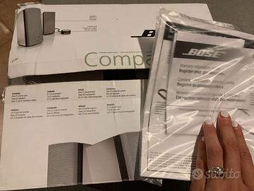 Vendo Bose Companion 20 Multimedia Speaker System, comprende tutti i cavi per le due casse, in buonissime condizioni quasi come nuovo. E' presente sia la spina europea che quella inglese/americana. Dalla foto potete vedere i tipi di cavi presenti. Originale al 100% con scatola inclusa. Per altre informazioni contattatemi, prezzo poco trattabile