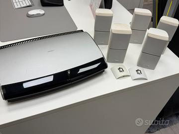 Vendo causa inutilizzo, impoanto bose home theatre per casa, lifestyle 38 serie III come da foto. Comoleto di modulo bassi, casse dincolore bianco e supporti casse per attacco a muro. Mancano alcuni cavi per per le casse ed amolificatore, ma si possono reperire facilmente su internet. Completo di telecomando. E scatolone originale. L’impianto funziona regolarmente.