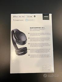 Vendo le mie cuffie Bose QuietComfort 35 II in ottime condizioni. Offrono un'eccellente qualità audio e una riduzione attiva avanzata del rumore per un'esperienza di ascolto immersiva. Grazie al design confortevole e alla durata della batteria di 20 ore, queste cuffie sono perfette per i lunghi spostamenti o le sessioni di lavoro prolungate. Si collegano facilmente tramite Bluetooth e hanno comandi intuitivi sull'auricolare. Questo set include anche una comoda custodia per il trasporto. Se stai cercando delle cuffie di alta gamma per goderti appieno la tua musica, non esitare a contattarmi!