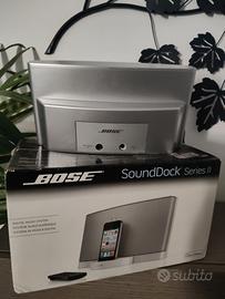 vendo per inutilizzo sistema audio bose sounddock series II. senza nemmeno un graffio. utilizzato veramente poco. con 30 euro si può acquistare un adattatore bluetooth che lo rende collegabile a qualsiasi dispositivo. così com è è collegabile sono a dispositivi Apple con connettore 30 PIN.