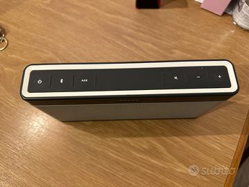 Vendo speaker Bluetooth Bose SoundLink III, in ottime condizioni e perfettamente funzionante. Qualità audio elevata, tipica Bose, con suono potente, bassi profondi e ottima resa anche ad alto volume. Design elegante e robusto, ideale sia per uso domestico che in mobilità. Facile da trasportare e perfetto per ascoltare musica ovunque grazie alla connessione Bluetooth stabile e veloce. Caratteristiche tecniche: •Connessione: Bluetooth wireless •Autonomia: fino a 14 ore di riproduzione •Portata Bluetooth: circa 9 metri •Ingresso AUX per collegamento cablato •Ricarica tramite alimentatore incluso •Dimensioni compatte e struttura solida in alluminio •Compatibile con smartphone, tablet e PC Suono chiaro e bilanciato con ottima presenza dei bassi, ideale per qualsiasi genere musicale.