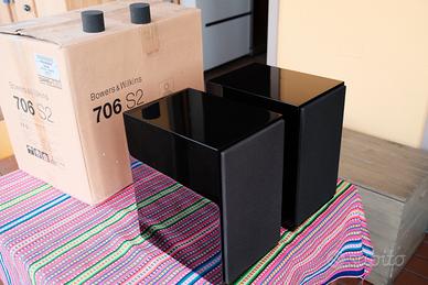 Coppia Diffusori b&w 706 s2 colore elegante nero piano un suono pieno e realistico, con uno straordinario livello di dettaglio, profondità e nitidezza. I diffusori sono come nuovi ma segnalo un piccolo segno quasi impercettibile in uno dei diffusori . Completi di tutta la dotazione e box originale. Solo ritiro a mano dopo ascolto