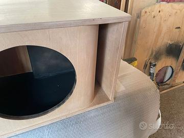Vendesi per cambio tipologia questo fantastico box professionale per subwoofer da 30 o 32cm di diametro progettato per SQL. Il progetto è stato eseguito secondo ogni minimo dettaglio senza trascurare nulla e la realizzazioni della struttura è stata fatta fare da un falegname noto nel settore car audio. Il reflex è stato curvato nella parte frontale per dargli un tocco unico nel suo genere. Il legno è ancora naturale e non è stato ne rivestito ne verniciato. Le misure sono: 66 X 38.5 X 40 legno di Betulla e non la classica porcheria di mdf. Date le dimensioni non ingombranti è adatto a qualsiasi vettura. Astenersi perditempo e indecisi, per altre informazioni rispondo solo a persone realmente interessate.