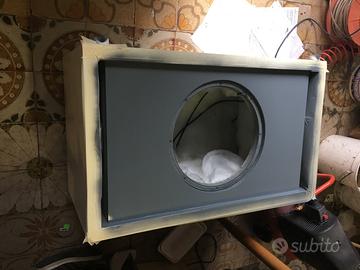 Vendo box subwoofer senza altoparlante solo box fatto fare da falegname , composto da 3 strati di legno miltistrato/mdf/multistrato per uno spessore totale di 42 mm come si puo vedere bernociato bianco e grigio possibilta di essere usato in verticale orizzontale, per woofer da 15” assente da vibrazioni rigidissimo
