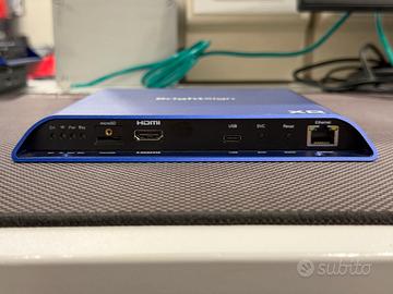 Lettore multimediale professionale ad alte prestazioni, progettato per gestire contenuti 4K HDR, HTML5 avanzati e interattività. Offre un potente motore video, riproduzione simultanea a doppio video Full HD, Gigabit Ethernet, porte interattive (GPIO, IR, USB) e capacità di sincronizzazione in rete.