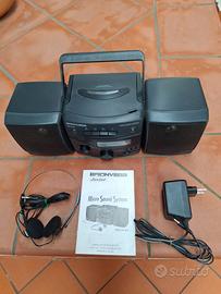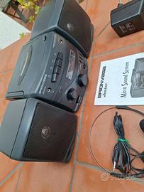 Piccolo compact radio am - fm stereo con lettore di cassette e piccolo equalizzatore, completo di tutti gli accessori in dotazione.