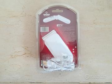 SK BRONDI SPK-10 Mini Speaker MP3/MP4 Pieghevoli - Connessione ai riproduttori tramite cavetto con spinotto - Cavo con plug per alimentazione da PC - Potenza: 1.2W + 1.2W - Risposta in frequenza: 100 - 12000 Hz - Alimentazione: Batterie 4 x 1,5 AA Come nuovo, ancora blisterato. Prezzo NON trattabile. Già ribassato. Possibile il ritiro a mano.