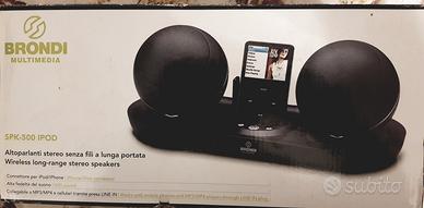vendo altoparlanti stereo senza fili a lunga portata wireless long-range stereo speakers. connettore per IPOD/IPHONE. Alta fedeltà del suono HI FI sound. Collegabile a MP3/MP4 e cellulari tramite presa line in.