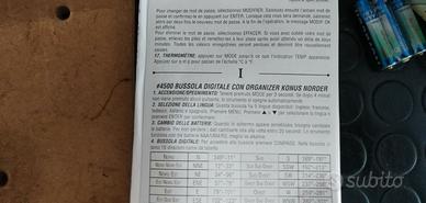 Descrizione BUSSOLA DIGITALE NORTH-1 KONUSBussola digitale con declinazione e funzione di navigazione - Risoluzione 1 grado - Termometro con temperatura in °C e °F - Organizer con rubrica telefonica, memo e appuntamenti - cinque lingue disponibili: inglese, francese, italiano, tedesco e spagnolo - Orologio - Allarme - ora mondiale - cronometro - Illuminazione. prodotto nuovo
