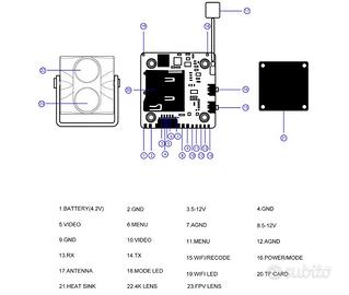 Cam FPV analogica doppia (FPV + registrazione microSD) – Perfetta Vendo telecamera FPV analogica doppia, ideale per droni FPV / cinewhoop. ✔️ Doppia funzione: - FPV in tempo reale per visori - registrazione video su microSD ✔️ Configurazione facile: - SmartAudio da radiocomando (UART) - oppure via Wi-Fi da smartphone ✔️ Condizioni: perfettamente funzionante, già testata 🎁 Incluso: cavo flat di ricambio Prezzo leggermente trattabile 📹 Video reali disponibili su YouTube (@massimoc.7428): - test su drone CinePro - prova a banco