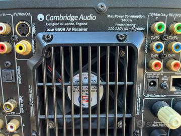 Vendo in ottime condizioni estetiche ampli AV Cambridge Audio Azur 650R funziona perfettamente , ha un solo problema, NON funzionano le prese HDMI . Per il resto tutto ok. Ottima qualità sonora , la conferma dalle molteplici recensioni in rete. Posso spedire . Il prezzo tiene considerazione del problema con le HDMI. Completo del suo telecomando originale.