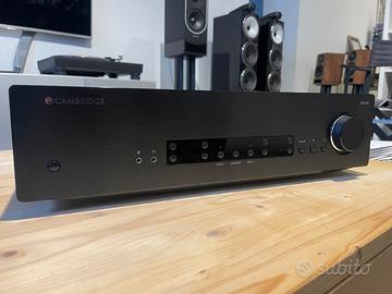 Vendiamo usato amplificatore CAMBRIDGE AUDIO in eccellenti condizioni, anno 2019. Imballo originale e manuale di istruzioni originale. Condizioni perfette. Descrizione: Amplificatore integrato stereo di alta qualità, capace di erogare 80W RMS per canale su 8 Ohm (120W su 4 Ohm). Dotato di DAC Wolfson WM8740 ad alte prestazioni, offre ingressi bilanciati XLR, USB asincrona (24-bit/192kHz) e ottici/coassiali, garantendo un suono dettagliato e una connettività completa