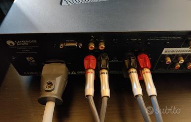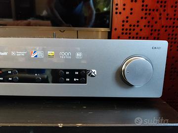 Cambridge Audio CXA81 – Pari al Nuovo Vendo amplificatore integrato Cambridge Audio CXA81 in condizioni pari al nuovo. ⏳Acquistato a Gennaio 2023 ✔ Unico proprietario e unico utilizzatore ✔ Utilizzo reale 200–300 ore (praticamente appena ridato) ✔ Sempre utilizzato a volume moderato (max ore 11) ✔ Mai spostato dal mobile (zero vibrazioni/urti) ✔ Ambiente domestico una persona no fumatore. Condizioni estetiche e funzionali perfette, nessun graffio o segno (c'è ancora la protezione sullo schermo). Completo di: - Telecomando originale - Cavo di alimentazione originale (mai utilizzato) - Control Bus Cable (mai utilizzato) Suono eccellente, dinamico e dettagliato, perfetto per impianti hi-fi di livello. Vendo per upgrade. 💰 Prezzo: 750 📍 Possibilità di prova e ritiro a mano 📦 Spedizione disponibile a carico dell'acquirente (costo e modalità da definire al momento dell'acquisto). Contattami per info o altre foto. SPECIFICHE: POWER OUTPUT 80W RMS into 8 Ohms, 120W RMS into 4 Ohms DAC ESS Sabre ES9016K2M FREQUENCY RESPONSE <5Hz– 60kHz +/-1dB ANALOGUE AUDIO INPUTS 1x balanced XLR, 4 x RCA DIGITAL AUDIO INPUTS 1 x S/PDIF coaxial, 2 x TOSLINK optical, 1 x USB audio, Bluetooth (integrated) COMPATIBILITY TOSLINK optical: 16/24bit 32-96kHz PCM only, S/PDIF coaxial: 16/24bit 32-192kHz PCM only, USB: audio profile 1.0/2.0 (default 2.0), up to 24-bit 384kHz PCM, up to DSD256 or DoP256, Bluetooth: 4.2 A2DP/AVRCP supporting up to aptX HD (24bit 48kHz) BLUETOOTH APTX HD RECEIVER BUILT-IN Yes ROON TESTED Yes OUTPUTS Speakers A+B, 3.5mm headphone, Preamp Output, Subwoofer Output REMOTE CONTROL Yes MAX POWER CONSUMPTION 750W STANDBY POWER CONSUMPTION <0.5W DIMENSIONS (H X W X D) 115 x 430 x 341mm (4.5 x 16.9 x 13.4”) WEIGHT 8.7 Kg ( 19.1Lbs)