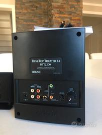 Cambridge SoundWorks DeskTop Theatre 5.1 DTT2200 Il sistema di altoparlanti Home Theatre Dolby 5.1 per schede audio sound Blaster Live! 5.1. Prodotto usato pochissimo in perfette condizioni. Il sistema di altoparlanti Home Theatre Dolby® 5.1 per schede audio Sound Blaster Live! 5.1 Cambridge SoundWorks DeskTop Theatre™ 5.1 DTT2200 è un sistema di altoparlanti home theatre appositamente progettato per offrirvi audio a sei canali di ottima qualità con schede audio della serie Sound Blaster® Live! ™ 5.1. Le straordinarie prestazioni del sistema di altoparlanti DeskTop Theatre™ 5.1 DTT2200 vi faranno vivere indimenticabili esperienze di audio surround 5.1 sia con i film su DVD che con i giochi con supporto EAX™ e Microsoft® DirectSound® 3D. Grazie alla combinazione di eccellente qualità e notevole convenienza, DeskTop Theatre 5.1 DTT2200 è in grado di trasformare il vostro PC in un vero e proprio sistema home theatre.