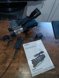 Camera semi-professionale con molteplice funzioni e obiettivo intercambiabile, compatibili tipo "a-mount". Funzioni Focus,luminosità, esposizione, ISO ecc. Usa carta SD o memory-stick della Sony e altri marchi compattibili. Terminale HDMI out ed presa corrente. Sensore CMOS da 23,4 mm x 15,6 mm.