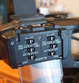 Vendo cinecamera professionale Canon C100 con focus manuale, munita di maniglia audio, 2 batterie di riserva, caricabatterie, cavetteria e altri accessori.