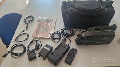 Canon E300 con accessori, cavi, batteria da ripristinare, collegamento alla rete elettrica e borsa