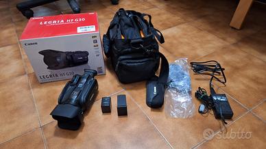 Videocamera Canon Legria HF G30 WiFi, completo di scatola, borsa da trasporto, telecomando, microfono con pelliccia, caricabatteria, batteria aggiuntiva, microfono direzionale stereo DM-100