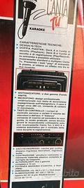 Sistema Karaoke portatile “Canta tu” di Giochi Preziosi, un modello classico degli anni 90. Include un microfono con cavo e un’unità principale con altoparlanti integrati. Presenta un “lettore di Cassette” e una radio. In scatola originale. Privo della musicassetta audio fornita come demo.