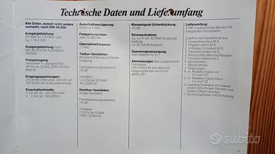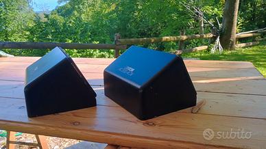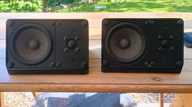 Coppia di straordinarie casse attive bi amplificate con crossover elettronico. Dispongono di due ingressi uno alto livello tipo uscita autoradio e uno a basso livello o pre per collegare direttamente CD player , smartphone o uscita cuffia di un computer o tablet. L'alimentazione è a 12V e dispongono all'interno di un circuito che le accende appena sentono in ingresso un segnale e le spengono quando il segnale in ingresso cessa. Sono perfettamente funzionanti e sono state revisionate con la sostituzione di tutti i condensatori elettrolitici. Il suono è molto dettagliato così come la dinamica che riescono a riprodurre grazie agli amplificatori dedicati per tweeter e woofer. Sono ideali per un impianto da scrivania, camper, barca o auto. La coppia costava intorno a mezzo milione di lire negli anni 80.