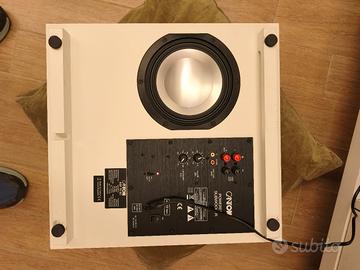 Subwoofer in ottime condizioni, con possibilità di metterlo sotto un mobile, appenderlo al muro come fosse in quadro o integrarlo come ho fatto io in un mobile IKEA Hemnes.