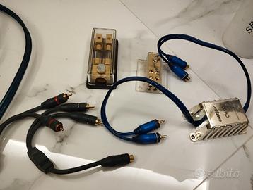 Usati qualche mese poi smontati x cambio auto _Amplificatore JBL CS60.4......80€ _ Sdoppiatore positivi con 2 fusibili...15€ _Sdoppiatore negativi - 4 masse....10€ _ Filtro antidisturbo RCA.....10€ _Adattatore segnale amplificato-preamplificato Phonocar....20€ _Prolunga RCA con filo remote....5€ _Condensatore 1 farad Audison...40€ _ 2 Sdoppiatori cavi segnale RCA....5€ l' uno _Equalizzatore Macrom 48.22...…..40€ Ritiro o spedizione a carico acquirente